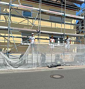 Einsatzart: als häufigste Form, geeignet als Systemgerüst (Rahmengerüst) aus vorgefertigten Teilen für Sanierung, Fassadenbau, Wärmedämmung.
