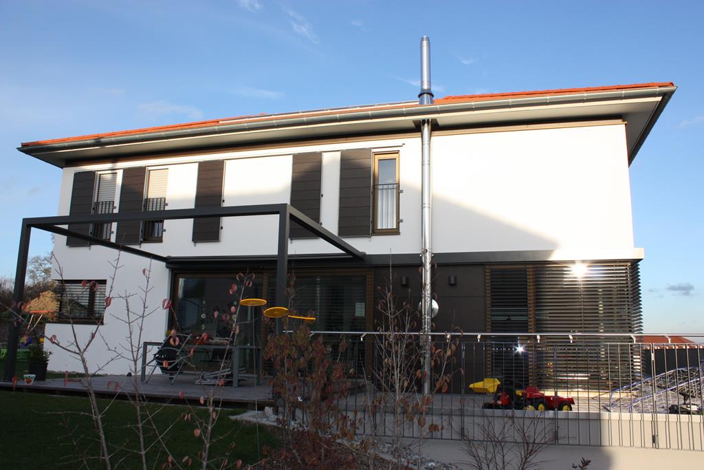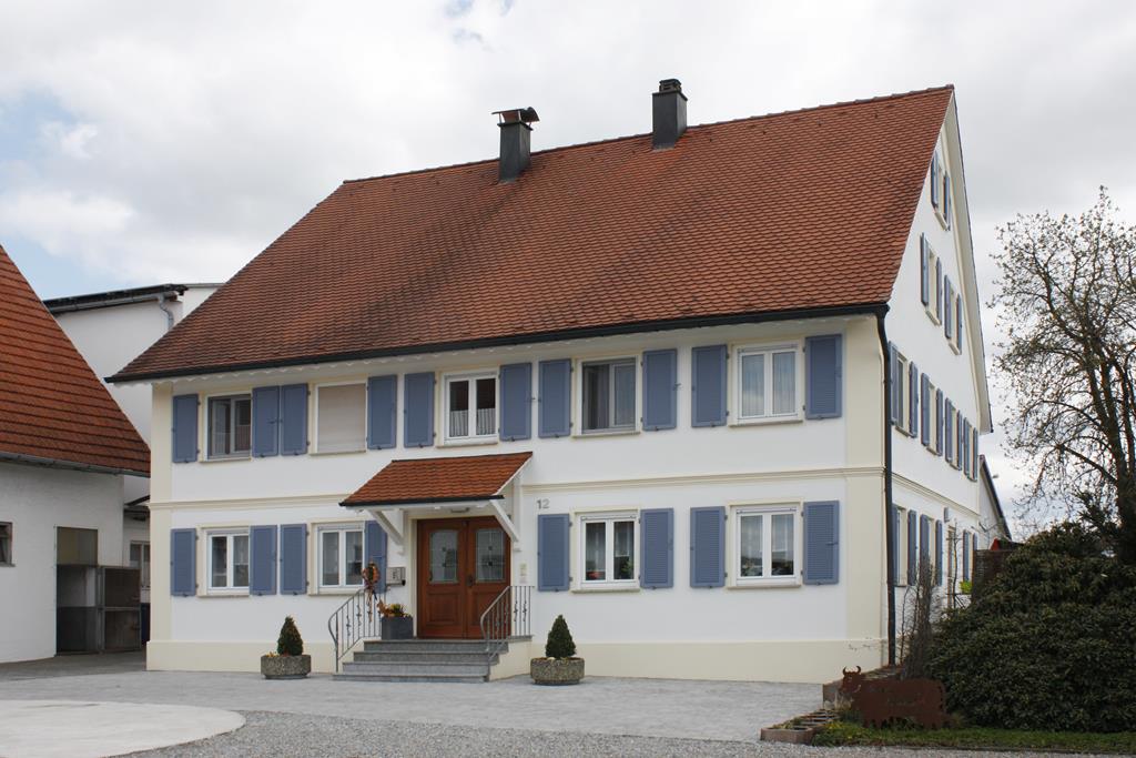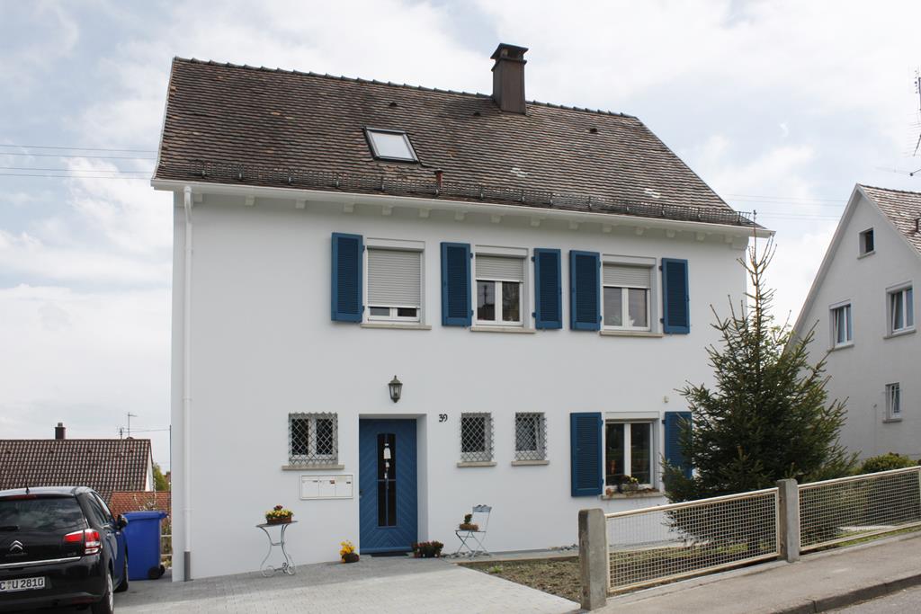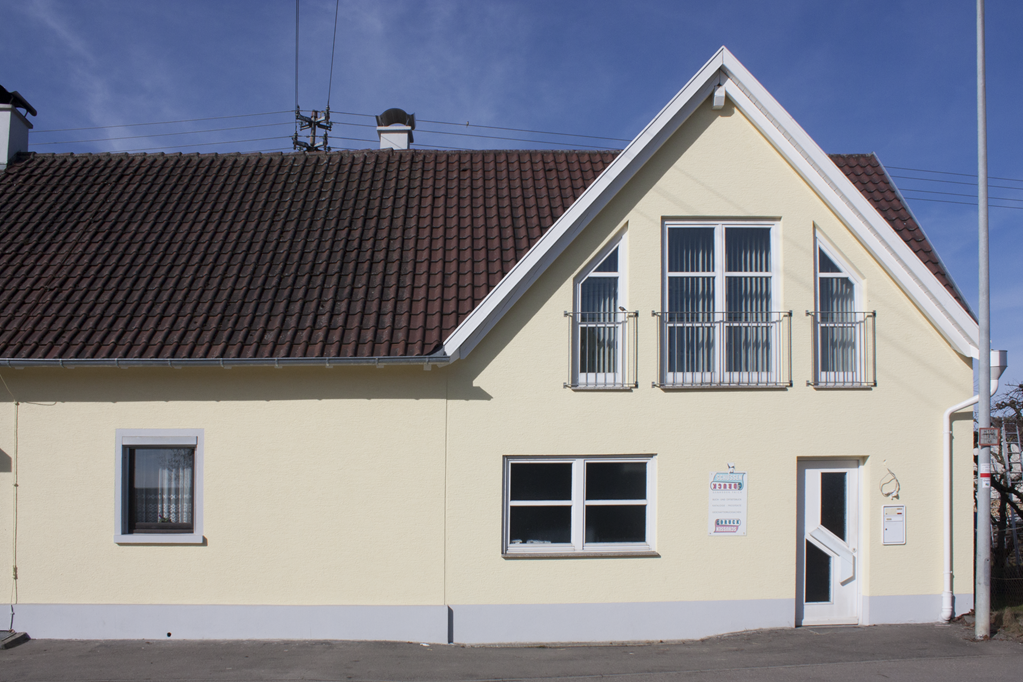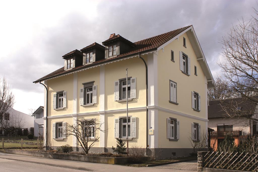 Erneuerung Stuckgurte sowie Holzprofile neuer Fassadenaufbau und farbliche Akzente